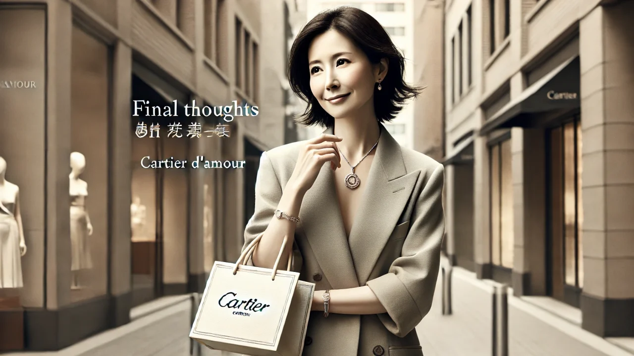 これらのポイントを踏まえることで、カルティエのダムールを長く愛用し、後悔することなくジュエリーを楽しめます。特に40代、50代の女性にとっては、一生ものとなる買い物なので、慎重に選びましょう。